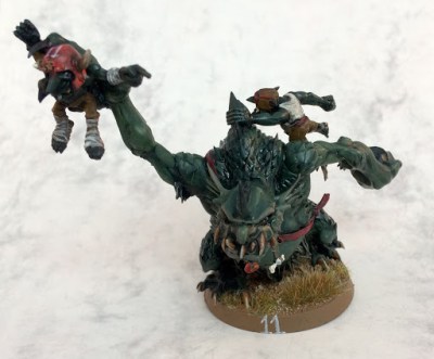 The troll is a plastic GW river troll, a little bit of green stuff and some climbing Goblins. I’m considering giving him some armour, and repainting some of the team, now I have a little more experience at it. Might change all the bronze and gold to silver iron, and make them more striking in the skin tone area.