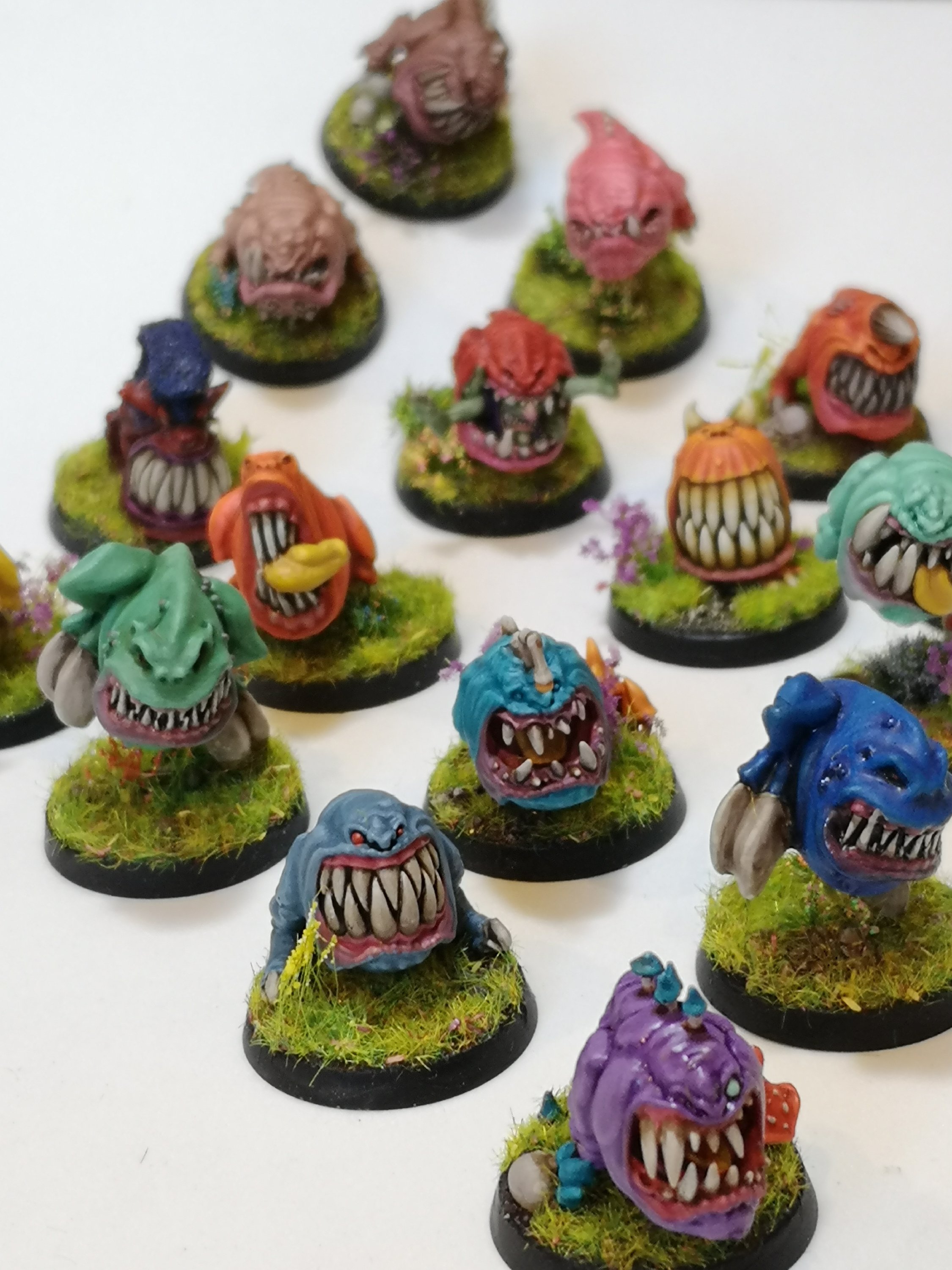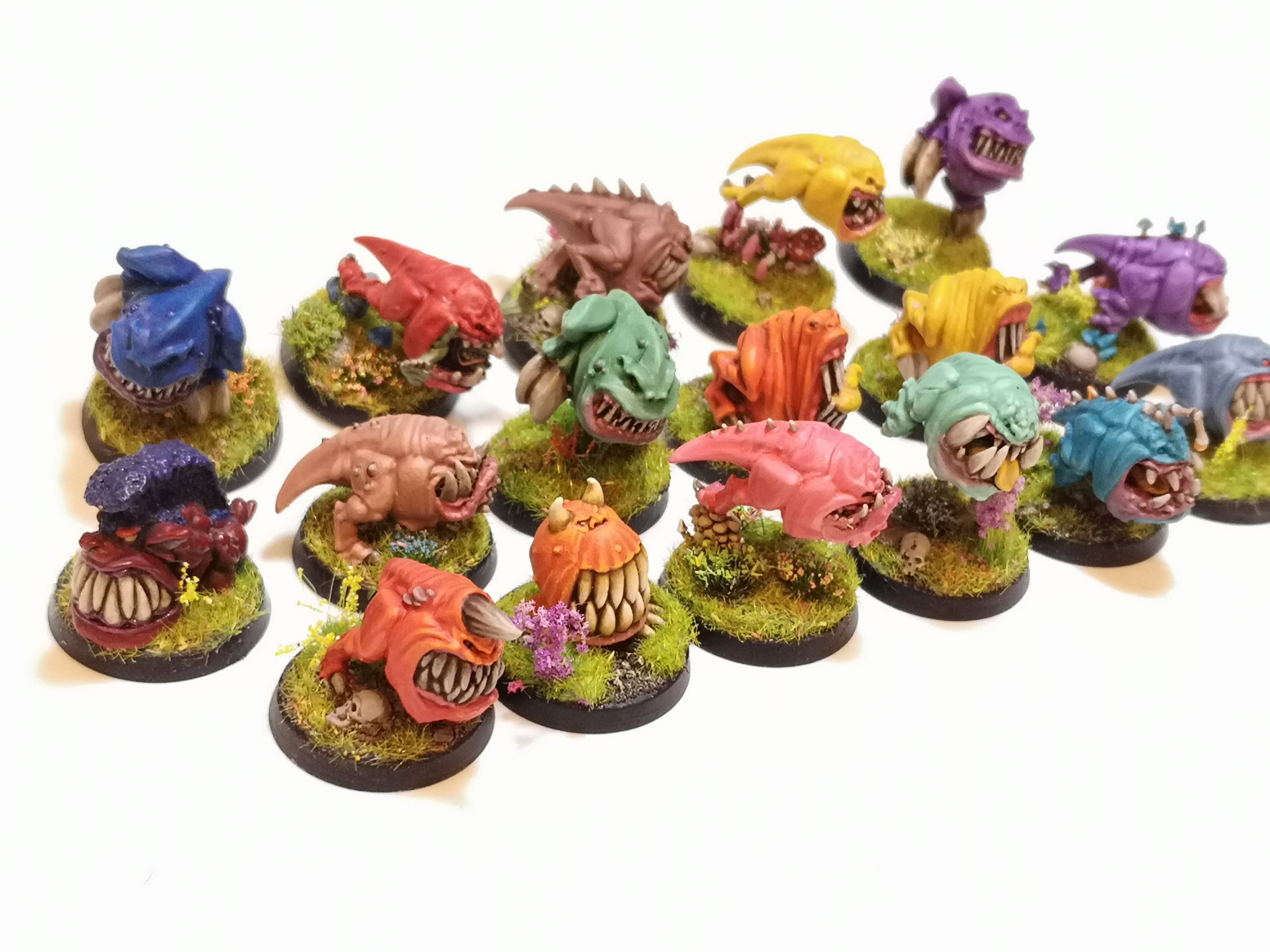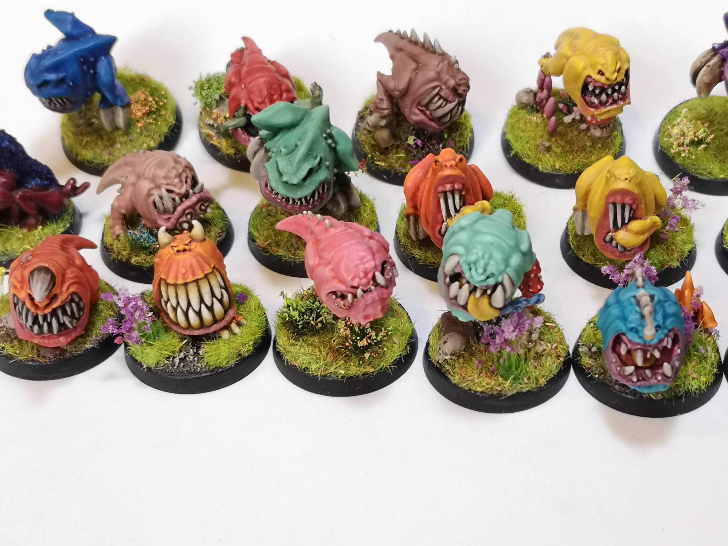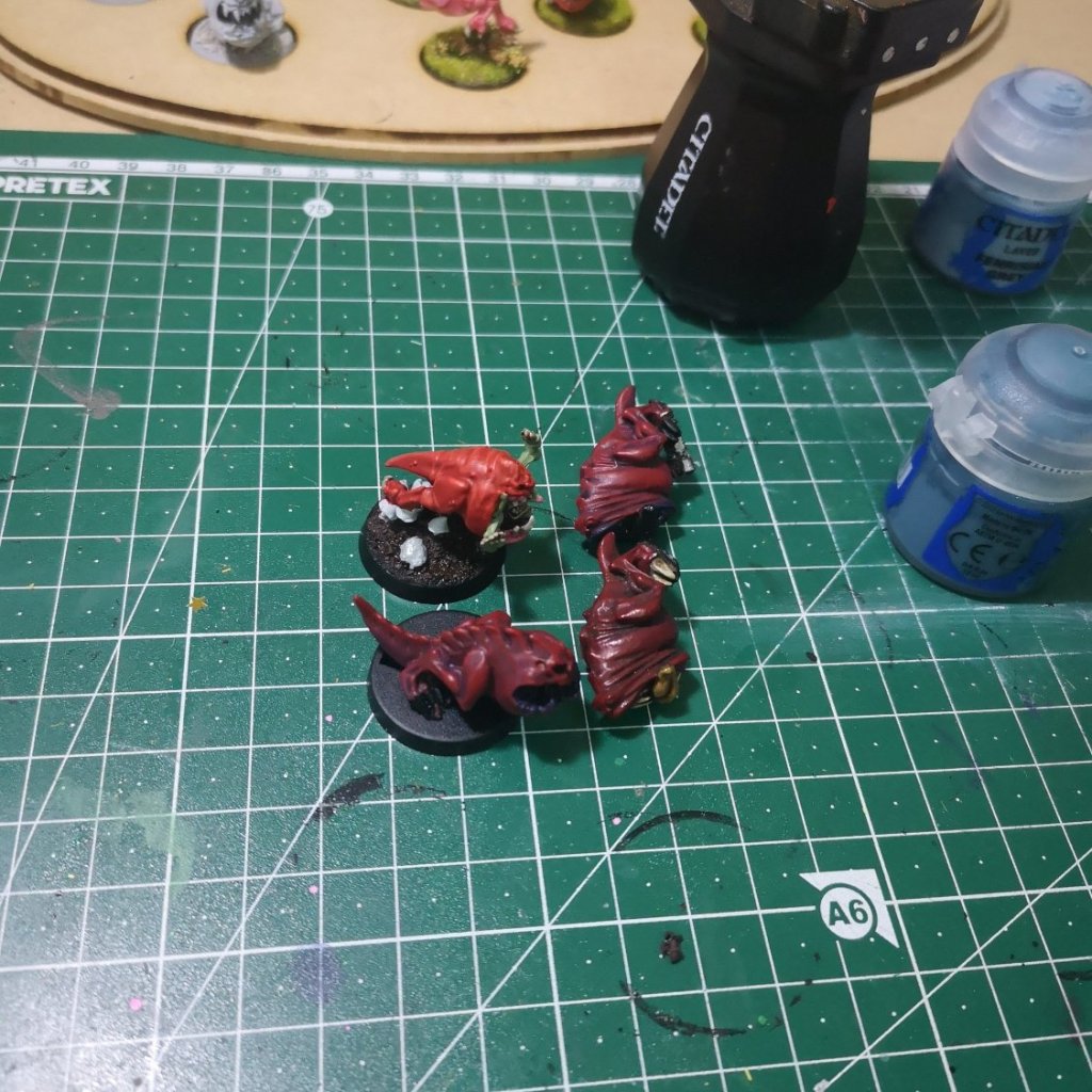 When I first started with squigs I based them all in black spray primer and painted them red through scorched brown. I thought they were finished then. Now, they look half done!